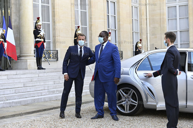 Légende : Emmanuel Macron reçoit Macky Sall, Président de la République du Sénégal, pour un déjeuner de travail au Palais de l'Elysée /// Emmanuel Macron receives Macky Sall, President of the Republic of Senegal, for a working lunch at the Elysée Palace - Paris - 26/08/2020 - Photo © Lionel Préau +33 (0)6 68 12 83 77 contact@lionelpreau.com