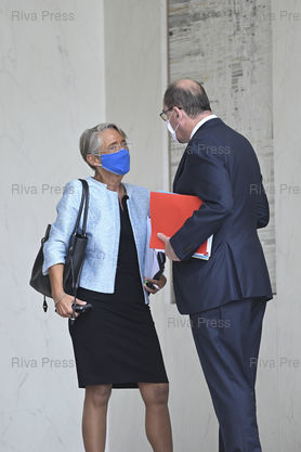 Légende : Conseil des ministres au palais de l'Elysée. Elisabeth Borne, ministre du Travail, de l'Emploi et de l'Insertion - Jean Castex, premier ministre /// Cabinet meeting at the Elysee Palace. Elisabeth Borne, Minister of Labor, Employment and Integration - Jean Castex, Prime Minister - Paris - 23/09/2020 - Photo © Lionel Préau +33 (0)6 68 12 83 77
