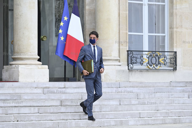 Légende : Conseil des ministres au palais de l'Elysée. Gabriel Attal, porte-parole du Gouvernement /// Cabinet meeting at the Elysee Palace. Gabriel Attal, spokesperson of the Government - Paris - 23/09/2020 - Photo © Lionel Préau +33 (0)6 68 12 83 77