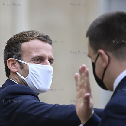 Légende : Emmanuel Macron reçoit Jüri Ratas, Premier ministre de la République d'Estonie, pour un déjeuner de travail au palais de l'Elysée /// Emmanuel Macron receives Jüri Ratas, Prime Minister of the Republic of Estonia, for a working lunch at the Elysée Palace - Paris - 28/10/2020 - Photo © Lionel Préau +33 (0)6 68 12 83 77