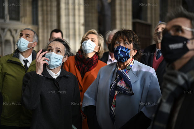 Légende : Roselyne Bachelot, ministre de la Culture, visite la Basilique cathédrale de Saint-Denis, nécropole des rois de France. Jacques Moulin, architecte en chef des monuments historiques, présente les travaux en cours, les ateliers de taille de pierre et de ferronnerie. En présence de Valérie Pécresse, présidente du Conseil régional d'Ile-de-France /// Roselyne Bachelot, Minister of Culture, visits the Basilica of Saint-Denis, necropolis of the kings of France. Jacques Moulin, chief architect of historical monuments, presents the work in progress, the stone cutting and ironwork workshops. With Valerie Pecresse, President of the Regional Council of the Ile-de-France region - Saint-Denis - 05/12/2020 - Photo © Lionel Préau +33 (0)6 68 12 83 77