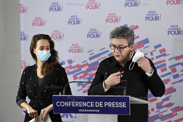 Légende : La France Insoumise lance un Comparateur de programmes pour l'élection présidentielle. En présence de Clémence Guetté, co-responsable du programme présidentiel, Jean-Luc Mélenchon, candidat à l'élection présidentielle 2022 /// La France Insoumise launches a program comparator for the presidential election. With Clémence Guetté, co-head of the presidential program, Jean-Luc Mélenchon, candidate for the 2022 presidential election - Paris - 17/02/2021 - Photo © Lionel Préau +33 (0)6 68 12 83 77