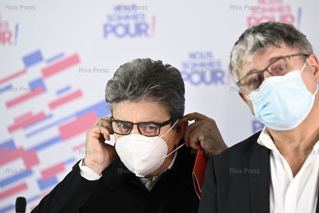 Légende : La France Insoumise lance un Comparateur de programmes pour l'élection présidentielle. En présence de Jean-Luc Mélenchon, candidat à l'élection présidentielle 2022, Eric Coquerel, député de Seine-Saint-Denis /// La France Insoumise launches a program comparator for the presidential election. With Jean-Luc Mélenchon, candidate for the 2022 presidential election, Eric Coquerel, MP of Seine-Saint-Denis - Paris - 17/02/2021 - Photo © Lionel Préau +33 (0)6 68 12 83 77