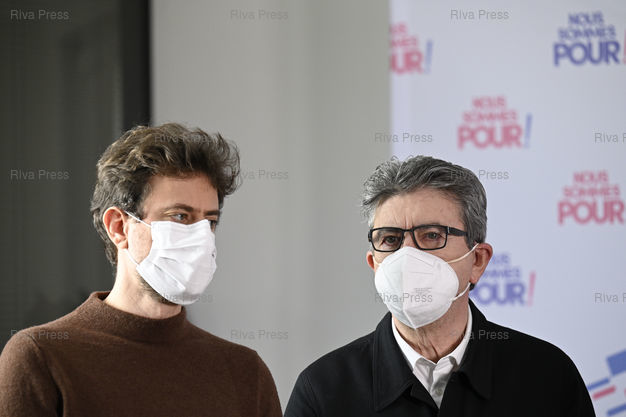 Légende : La France Insoumise lance un Comparateur de programmes pour l'élection présidentielle. En présence de Paul Vannier, assistant parlementaire de JL Mélenchon, Jean-Luc Mélenchon, candidat à l'élection présidentielle 2022 /// La France Insoumise launches a program comparator for the presidential election. With Paul Vannier, parliamentary assistant to JL Mélenchon, Jean-Luc Mélenchon, candidate for the 2022 presidential election - Paris - 17/02/2021 - Photo © Lionel Préau +33 (0)6 68 12 83 77
