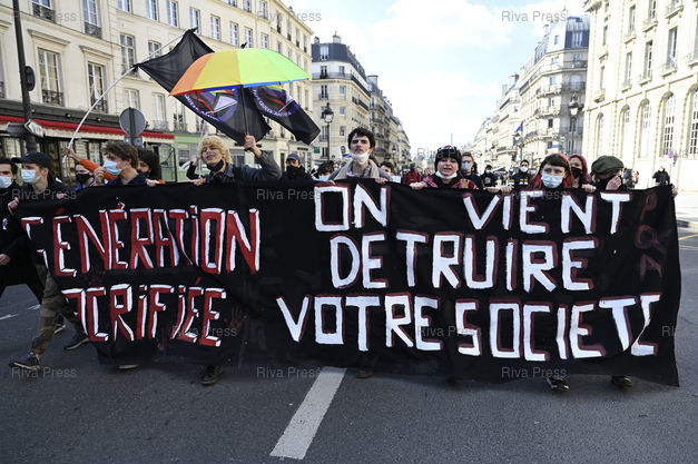 Légende : Marche pour le climat et la justice sociale à l'appel de Youth For Climate France, branche française de Fridays For Future /// March for climate and social justice at the call of Youth For Climate France, French branch of Fridays For Future - Paris - 19/03/2021 - Photo © Lionel Préau +33 (0)6 68 12 83 77