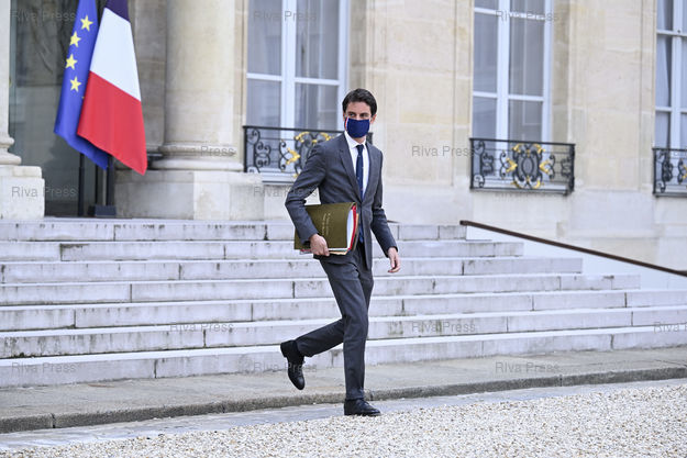 Caption : Conseil des ministres au palais de l'Elysée. Gabriel Attal, porte-parole du Gouvernement /// Cabinet meeting at the Elysee Palace. Gabriel Attal, spokesperson of the Government - Paris - 14/04/2021 - Photo © Lionel Préau +33 (0)6 68 12 83 77