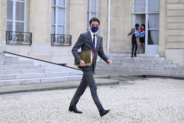 Légende : Conseil des ministres au palais de l'Elysée. Gabriel Attal, porte-parole du Gouvernement /// Cabinet meeting at the Elysee Palace. Gabriel Attal, spokesperson of the Government - Paris - 14/04/2021 - Photo © Lionel Préau +33 (0)6 68 12 83 77