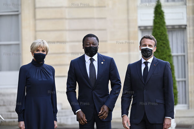 Légende : Emmanuel Macron accueille les chefs d'Etat et de gouvernement et des dirigeants d'organisations internationales participant au Sommet sur le financement des économies africaines, pour le dîner de travail au Palais de L'Elysée. Emmanuel et Brigitte Macron accueillent Faure Gnassingbe, président de la république du Togo /// Emmanuel Macron welcomes heads of state and government and heads of international organizations participating in the Summit on the financing of African economies, for the working dinner at the Elysée Palace. Emmanuel and Brigitte Macron welcome Faure Gnassingbe, President of the Republic of Togo - Paris - 17/05/2021 - Photo © Lionel Préau +33 (0)6 68 12 83 77