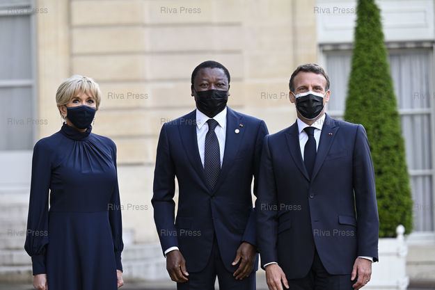 Légende : Emmanuel Macron accueille les chefs d'Etat et de gouvernement et des dirigeants d'organisations internationales participant au Sommet sur le financement des économies africaines, pour le dîner de travail au Palais de L'Elysée. Emmanuel et Brigitte Macron accueillent Faure Gnassingbe, président de la république du Togo /// Emmanuel Macron welcomes heads of state and government and heads of international organizations participating in the Summit on the financing of African economies, for the working dinner at the Elysée Palace. Emmanuel and Brigitte Macron welcome Faure Gnassingbe, President of the Republic of Togo - Paris - 17/05/2021 - Photo © Lionel Préau +33 (0)6 68 12 83 77