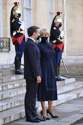 Légende : Emmanuel Macron accueille les chefs d'Etat et de gouvernement et des dirigeants d'organisations internationales participant au Sommet sur le financement des économies africaines, pour le dîner de travail au Palais de L'Elysée /// Emmanuel Macron welcomes heads of state and government and heads of international organizations participating in the Summit on the financing of African economies, for the working dinner at the Elysée Palace - Paris - 17/05/2021 - Photo © Lionel Préau +33 (0)6 68 12 83 77