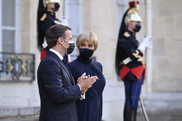 Légende : Emmanuel Macron accueille les chefs d'Etat et de gouvernement et des dirigeants d'organisations internationales participant au Sommet sur le financement des économies africaines, pour le dîner de travail au Palais de L'Elysée. Emmanuel et Brigitte Macron /// Emmanuel Macron welcomes heads of state and government and heads of international organizations participating in the Summit on the financing of African economies, for the working dinner at the Elysée Palace. Emmanuel and Brigitte Macron - Paris - 17/05/2021 - Photo © Lionel Préau +33 (0)6 68 12 83 77