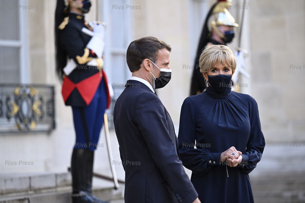 Légende : Emmanuel Macron accueille les chefs d'Etat et de gouvernement et des dirigeants d'organisations internationales participant au Sommet sur le financement des économies africaines, pour le dîner de travail au Palais de L'Elysée. Emmanuel et Brigitte Macron /// Emmanuel Macron welcomes heads of state and government and heads of international organizations participating in the Summit on the financing of African economies, for the working dinner at the Elysée Palace. Emmanuel and Brigitte Macron - Paris - 17/05/2021 - Photo © Lionel Préau +33 (0)6 68 12 83 77