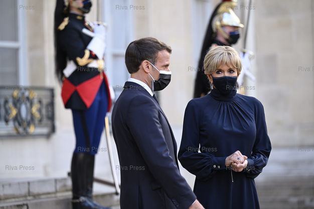 Légende : Emmanuel Macron accueille les chefs d'Etat et de gouvernement et des dirigeants d'organisations internationales participant au Sommet sur le financement des économies africaines, pour le dîner de travail au Palais de L'Elysée. Emmanuel et Brigitte Macron /// Emmanuel Macron welcomes heads of state and government and heads of international organizations participating in the Summit on the financing of African economies, for the working dinner at the Elysée Palace. Emmanuel and Brigitte Macron - Paris - 17/05/2021 - Photo © Lionel Préau +33 (0)6 68 12 83 77
