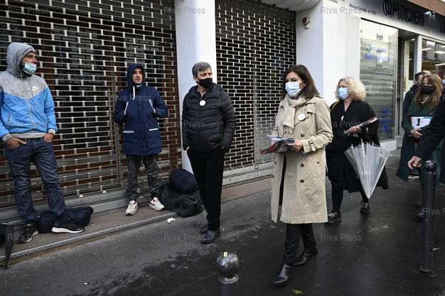 Légende : Anne Hidalgo, maire de Paris, vient souitenir Andrey Pulvar, candidate socialiste aux élections régionales en Île-de-France, lors d'une scéance de tractage dans les rues de Paris. Anne Hidalgo et David Assouline, sénateur de Paris /// Anne Hidalgo, mayor of Paris, comes to support Andrey Pulvar, socialist candidate in the regional elections in Île-de-France, during a campaign session in the streets of Paris. Anne Hidalgo and David Assouline, senator of Paris - Paris - 21/05/2021 - Photo © Lionel Préau +33 (0)6 68 12 83 77