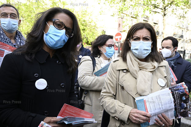Légende : Anne Hidalgo, maire de Paris, vient souitenir Andrey Pulvar, candidate socialiste aux élections régionales en Île-de-France, lors d'une scéance de tractage dans les rues de Paris /// Anne Hidalgo, mayor of Paris, comes to support Andrey Pulvar, socialist candidate in the regional elections in Île-de-France, during a campaign session in the streets of Paris - Paris - 21/05/2021 - Photo © Lionel Préau +33 (0)6 68 12 83 77