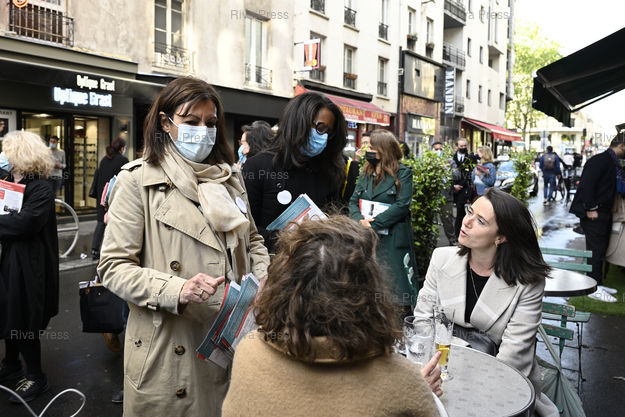 Légende : Anne Hidalgo, maire de Paris, vient souitenir Andrey Pulvar, candidate socialiste aux élections régionales en Île-de-France, lors d'une scéance de tractage dans les rues de Paris /// Anne Hidalgo, mayor of Paris, comes to support Andrey Pulvar, socialist candidate in the regional elections in Île-de-France, during a campaign session in the streets of Paris - Paris - 21/05/2021 - Photo © Lionel Préau +33 (0)6 68 12 83 77