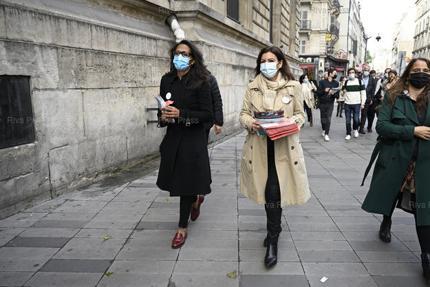 Légende : Anne Hidalgo, maire de Paris, vient souitenir Andrey Pulvar, candidate socialiste aux élections régionales en Île-de-France, lors d'une scéance de tractage dans les rues de Paris /// Anne Hidalgo, mayor of Paris, comes to support Andrey Pulvar, socialist candidate in the regional elections in Île-de-France, during a campaign session in the streets of Paris - Paris - 21/05/2021 - Photo © Lionel Préau +33 (0)6 68 12 83 77