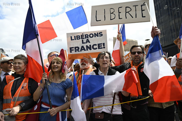 Légende : Manifestation contre l'extension du pass sanitaire, à l'appel de Florian Philippot, ex vice-président du Front national, fondateur du mouvement Les Patriotes et candidat à l'élection présidentielle /// Demonstration against the extension of the health pass, at the call of Florian Philippot, former vice-president of the far-right Front National Party, founder of the Les Patriotes movement and candidate for the presidential election - Paris - 31/07/2021 - Photo © Lionel Préau +33 (0)6 68 12 83 77