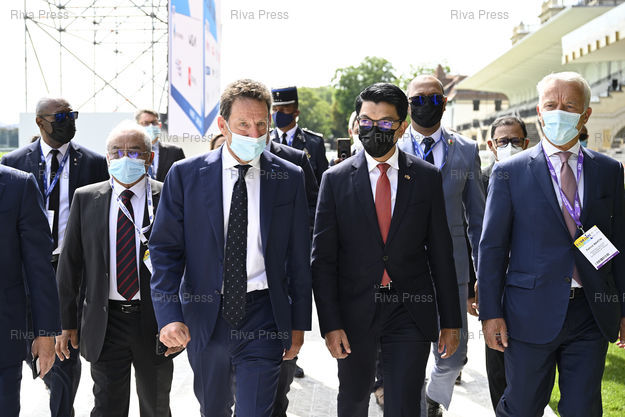 Légende : Rencontre des entrepreneurs francophones - La REF21 - organisée par le MEDEF, Mouvement des Entreprises de France. Geoffroy Roux de Bezieux, président du MEDEF - Andry Rajoelina, Président de la République de Madagascar /// Meeting with French-speaking entrepreneurs - La REF21 - organized by MEDEF, Mouvement des Entreprises de France, network of entrepreneurs in France. Geoffroy Roux de Bezieux, President of MEDEF - Andry Rajoelina, President of the Republic of Madagascar - Paris - 24/08/2021 - Photo © Lionel Préau +33 (0)6 68 12 83 77