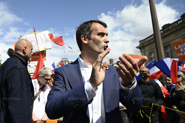 Caption : Manifestation contre l'extension du pass sanitaire, à l'appel de Florian Philippot, ex vice-président du Front national, fondateur du mouvement Les Patriotes et candidat à l'élection présidentielle /// Demonstration against the extension of the health pass, at the call of Florian Philippot, former vice-president of the far-right Front National Party, founder of the Les Patriotes movement and candidate for the presidential election - Paris - 28/08/2021 - Photo © Lionel Préau +33 (0)6 68 12 83 77
