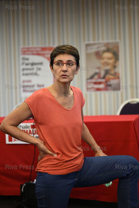 Légende : Nathalie Arthaud, porte-parole de Lutte ouvrière, lance sa campagne de candidate "communiste révolutionnaire" à l'élection présidentielle /// Nathalie Arthaud, spokesperson for Lutte Ouvrière, launches her campaign as a "revolutionary communist" candidate for the presidential election - Paris - 16/09/2021 - Photo © Lionel Préau +33 (0)6 68 12 83 77