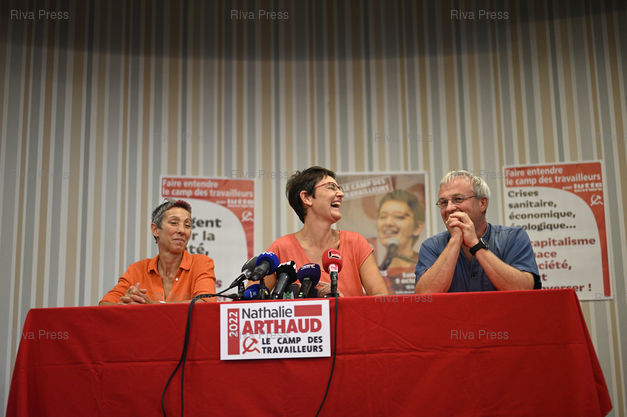 Légende : Nathalie Arthaud, porte-parole de Lutte ouvrière, lance sa campagne de candidate "communiste révolutionnaire" à l'élection présidentielle /// Nathalie Arthaud, spokesperson for Lutte Ouvrière, launches her campaign as a "revolutionary communist" candidate for the presidential election - Paris - 16/09/2021 - Photo © Lionel Préau +33 (0)6 68 12 83 77