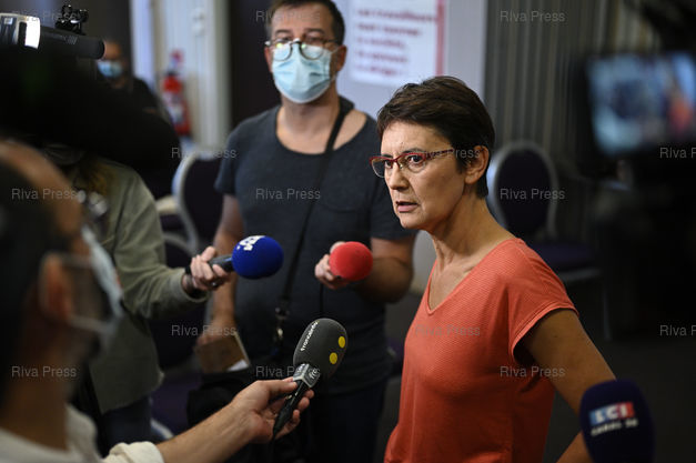 Légende : Nathalie Arthaud, porte-parole de Lutte ouvrière, lance sa campagne de candidate "communiste révolutionnaire" à l'élection présidentielle /// Nathalie Arthaud, spokesperson for Lutte Ouvrière, launches her campaign as a "revolutionary communist" candidate for the presidential election - Paris - 16/09/2021 - Photo © Lionel Préau +33 (0)6 68 12 83 77