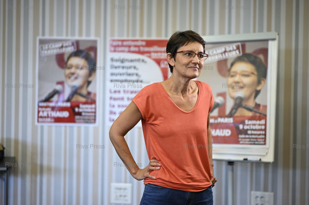 Légende : Nathalie Arthaud, porte-parole de Lutte ouvrière, lance sa campagne de candidate "communiste révolutionnaire" à l'élection présidentielle /// Nathalie Arthaud, spokesperson for Lutte Ouvrière, launches her campaign as a "revolutionary communist" candidate for the presidential election - Paris - 16/09/2021 - Photo © Lionel Préau +33 (0)6 68 12 83 77