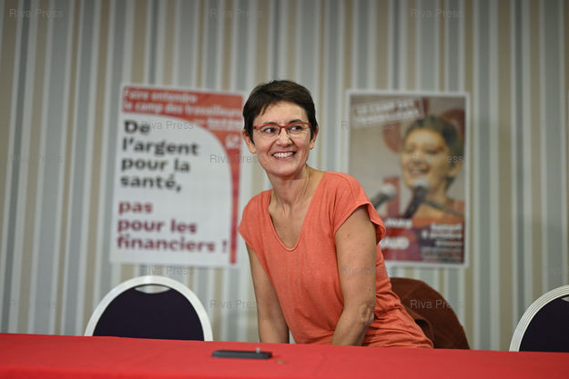 Légende : Nathalie Arthaud, porte-parole de Lutte ouvrière, lance sa campagne de candidate "communiste révolutionnaire" à l'élection présidentielle /// Nathalie Arthaud, spokesperson for Lutte Ouvrière, launches her campaign as a "revolutionary communist" candidate for the presidential election - Paris - 16/09/2021 - Photo © Lionel Préau +33 (0)6 68 12 83 77