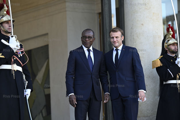 Légende : Emmanuel Macron reçoit Patrice Talon, président de la République du Bénin, au Palais de l’Elysée pour la signature de l'acte de transfert de propriété et finaliser le processus de restitution de 26 œuvres d'art des trésors royaux d'Abomey à la République du Bénin, pillées au XIXe siècle par les troupes coloniales, et conservées jusqu'ici au musée du quai Branly /// Emmanuel Macron receives Patrice Talon, President of the Republic of Benin, at the Elysée Palace for the signing of the deed of transfer of ownership and finalizing the process of restitution of 26 works of art from the royal treasures of Abomey to the Republic of Benin, looted in the 19th century by colonial troops, and kept until now at the Quai Branly museum - Paris - 09/11/2021 - Photo © Lionel Préau +33 (0)6 68 12 83 77