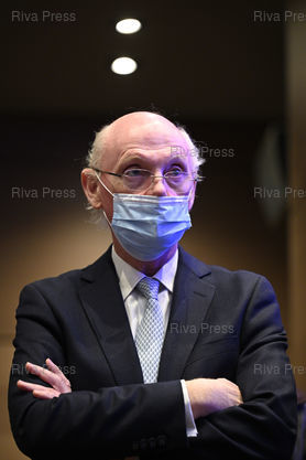 Légende : Valérie Pécresse, candidate Les Républicains à l'élection présidentielle, clôture la réunion avec les cadres du parti. Patrick Stefanini, directeur de campagne de Valérie Pécresse /// Valérie Pécresse, candidate of the Les Républicains Party for the presidential election, closes the meeting with the party's executives. Patrick Stefanini, campaign director of Valérie Pécresse - Paris - 11/12/2021 - Photo © Lionel Préau +33 (0)6 68 12 83 77