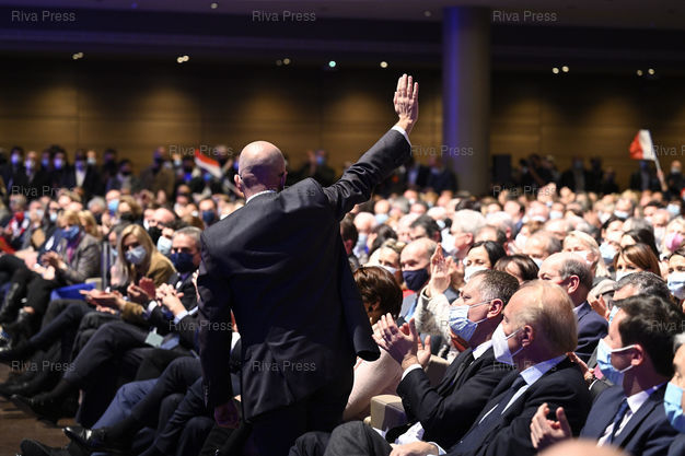 Légende : Valérie Pécresse, candidate Les Républicains à l'élection présidentielle, clôture la réunion avec les cadres du parti. Valérie Pécresse fait applaudir Eric Ciotti, finaliste de la primaire /// Valérie Pécresse, candidate of the Les Républicains Party for the presidential election, closes the meeting with the party's executives. Valérie Pécresse makes applaud Eric Ciotti, finalist of the primary - Paris - 11/12/2021 - Photo © Lionel Préau +33 (0)6 68 12 83 77