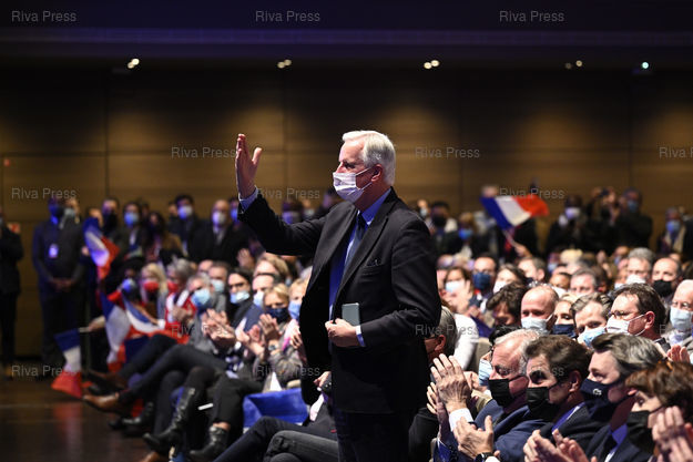 Mots-clés : 2021, fans, Les Republicains, LR, Meeting, Michel Barnier, Militants, Mutualite, Paris, Présidentielle, Public, Républicains, supporters