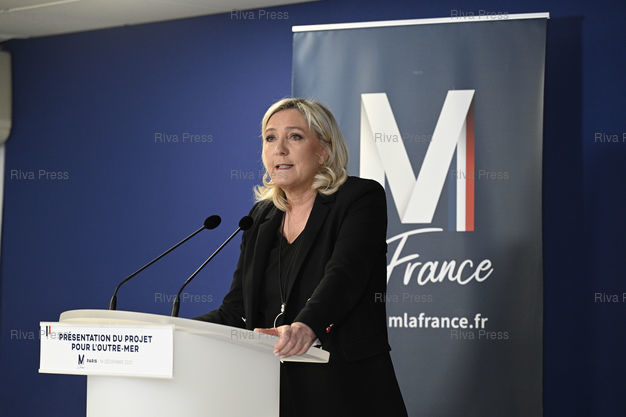 Légende : Marine Le Pen, candidate du Rassemblement national à l'élection présidentielle, présente son programme pour l'outre-mer /// Marine Le Pen, candidate of the Rassemblement National Party for the presidential election, presents her program for overseas - Paris - 14/12/2021 - Photo © Lionel Préau +33 (0)6 68 12 83 77