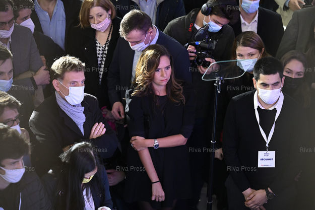 Légende : Eric Zemmour, candidat d'extrême droite à l'élection présidentielle, présente ses voeux aux militants - Galerie Joseph. En présence de Sarah Knafo, conseillère /// Eric Zemmour, far-right candidate to the presidential election, sends his greetings to activists - Galerie Joseph. With Sarah Knafo, advisor - Paris - 04/01/2022 - Photo © Lionel Préau +33 (0)6 68 12 83 77