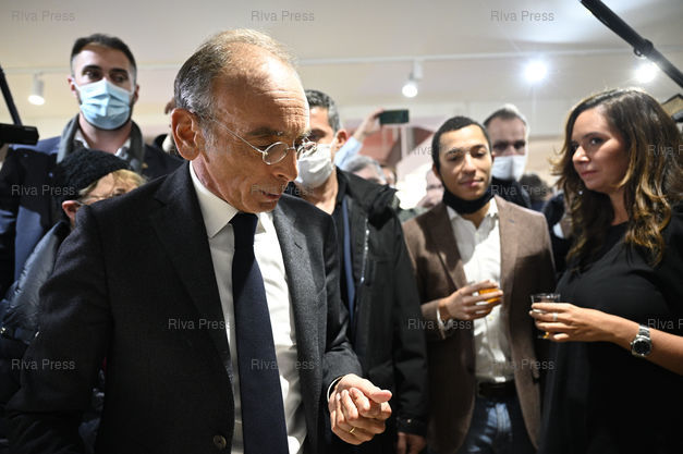 Légende : Eric Zemmour, candidat d'extrême droite à l'élection présidentielle, présente ses voeux aux militants - Galerie Joseph. En présence de Sarah Knafo /// Eric Zemmour, far-right candidate to the presidential election, sends his greetings to activists - Galerie Joseph. With Sarah Knafo - Paris - 04/01/2022 - Photo © Lionel Préau +33 (0)6 68 12 83 77
