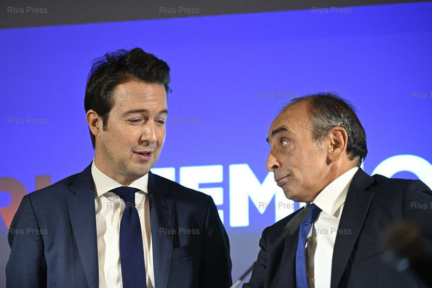 Caption : Eric Zemmour, candidat du parti Reconquête ! à l'élection présidentielle, présente ses voeux à la presse et son programme pour l'éducation. En présence de Guillaume Peltier, directeur de campagne /// Eric Zemmour, candidate of the Reconquête ! party to the presidential election, presents his best wishes for the new year to the press and his program for education. With Guillaume Peltier, campaign director - Paris - 10/01/2022 - Photo © Lionel Préau +33 (0)6 68 12 83 77