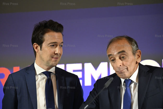 Caption : Eric Zemmour, candidat du parti Reconquête ! à l'élection présidentielle, présente ses voeux à la presse et son programme pour l'éducation. En présence de Guillaume Peltier, directeur de campagne /// Eric Zemmour, candidate of the Reconquête ! party to the presidential election, presents his best wishes for the new year to the press and his program for education. With Guillaume Peltier, campaign director - Paris - 10/01/2022 - Photo © Lionel Préau +33 (0)6 68 12 83 77