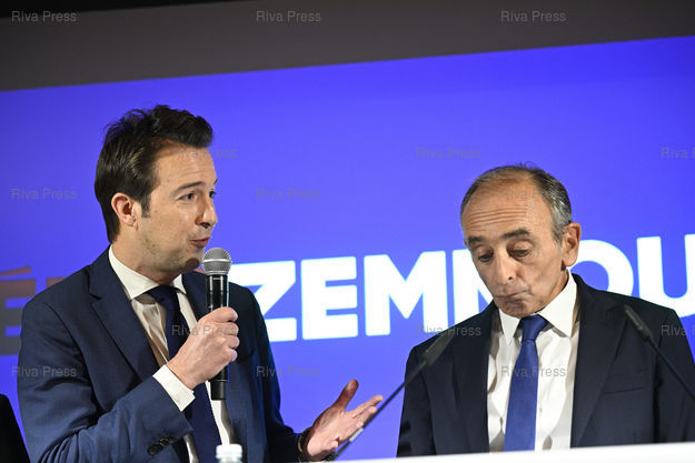 Légende : Eric Zemmour, candidat du parti Reconquête ! à l'élection présidentielle, présente ses voeux à la presse et son programme pour l'éducation. En présence de Guillaume Peltier, directeur de campagne /// Eric Zemmour, candidate of the Reconquête ! party to the presidential election, presents his best wishes for the new year to the press and his program for education. With Guillaume Peltier, campaign director - Paris - 10/01/2022 - Photo © Lionel Préau +33 (0)6 68 12 83 77