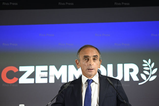 Caption : Eric Zemmour, candidat du parti Reconquête ! à l'élection présidentielle, présente ses voeux à la presse et son programme pour l'éducation /// Eric Zemmour, candidate of the Reconquête ! party to the presidential election, presents his best wishes for the new year to the press and his program for education - Paris - 10/01/2022 - Photo © Lionel Préau +33 (0)6 68 12 83 77