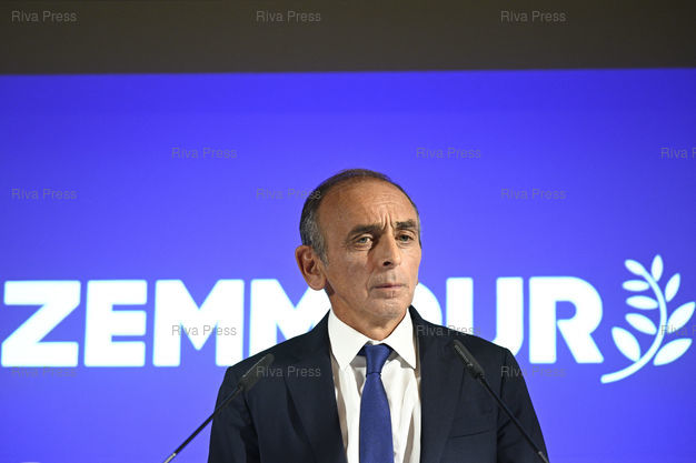 Caption : Eric Zemmour, candidat du parti Reconquête ! à l'élection présidentielle, présente ses voeux à la presse et son programme pour l'éducation /// Eric Zemmour, candidate of the Reconquête ! party to the presidential election, presents his best wishes for the new year to the press and his program for education - Paris - 10/01/2022 - Photo © Lionel Préau +33 (0)6 68 12 83 77