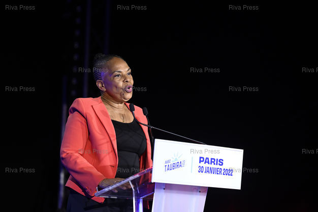 Légende : Déclaration de Christiane Taubira, gagnante de la Primaire populaire, qui ne parvient pas à unir la gauche pour une candidature unique à l'élection présidentielle /// Statement by Christiane Taubira, winner of the Popular Primary, who fails to unite the left for a single presidential candidacy - Paris - 30/01/2022 - Photo © Lionel Préau +33 (0)6 68 12 83 77