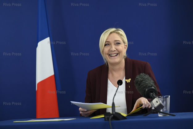 Légende : Marine Le Pen, candidate du Rassemblement national à l'élection présidentielle, présente la partie sur les retraites de son programme présidentiel /// Marine Le Pen, candidate of the Rassemblement National Party for the presidential election, presents the part on pensions of her presidential program - Paris - 17/02/2022 - Photo © Lionel Préau +33 (0)6 68 12 83 77