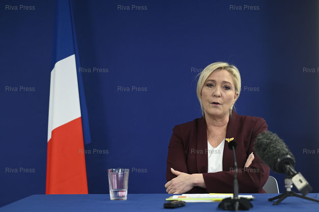 Légende : Marine Le Pen, candidate du Rassemblement national à l'élection présidentielle, présente la partie sur les retraites de son programme présidentiel /// Marine Le Pen, candidate of the Rassemblement National Party for the presidential election, presents the part on pensions of her presidential program - Paris - 17/02/2022 - Photo © Lionel Préau +33 (0)6 68 12 83 77
