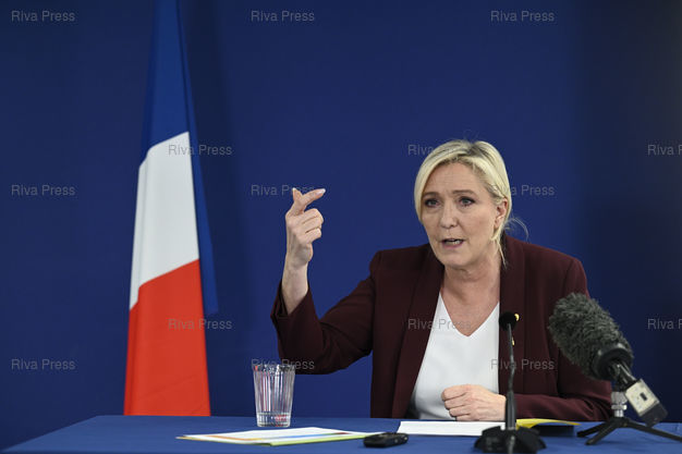 Légende : Marine Le Pen, candidate du Rassemblement national à l'élection présidentielle, présente la partie sur les retraites de son programme présidentiel /// Marine Le Pen, candidate of the Rassemblement National Party for the presidential election, presents the part on pensions of her presidential program - Paris - 17/02/2022 - Photo © Lionel Préau +33 (0)6 68 12 83 77