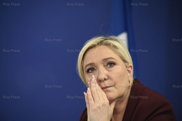Légende : Marine Le Pen, candidate du Rassemblement national à l'élection présidentielle, présente la partie sur les retraites de son programme présidentiel /// Marine Le Pen, candidate of the Rassemblement National Party for the presidential election, presents the part on pensions of her presidential program - Paris - 17/02/2022 - Photo © Lionel Préau +33 (0)6 68 12 83 77