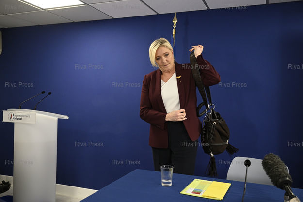 Légende : Marine Le Pen, candidate du Rassemblement national à l'élection présidentielle, présente la partie sur les retraites de son programme présidentiel /// Marine Le Pen, candidate of the Rassemblement National Party for the presidential election, presents the part on pensions of her presidential program - Paris - 17/02/2022 - Photo © Lionel Préau +33 (0)6 68 12 83 77