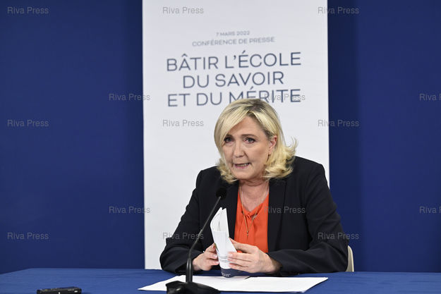 Légende : Marine Le Pen, candidate du Rassemblement national à l'élection présidentielle, présente son programme pour l'éducation /// Marine Le Pen, candidate of the Rassemblement National far-right party for the presidential election, presents her program for education - Paris - 07/03/2022 - Photo © Lionel Préau +33 (0)6 68 12 83 77