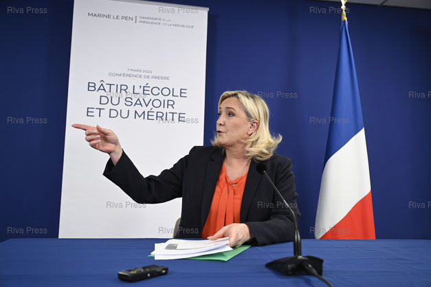 Légende : Marine Le Pen, candidate du Rassemblement national à l'élection présidentielle, présente son programme pour l'éducation /// Marine Le Pen, candidate of the Rassemblement National far-right party for the presidential election, presents her program for education - Paris - 07/03/2022 - Photo © Lionel Préau +33 (0)6 68 12 83 77