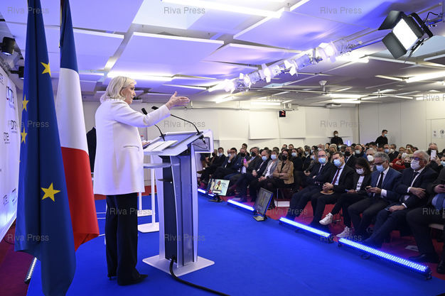 Légende : La CPME, Confédération des petites et moyennes entreprises, reçoit Marine Le Pen, candidate du Rassemblement national, dans le cadre de ses auditions de candidats à la présidentielle /// The CPME, Confederation of Small and Medium-Sized Enterprises, receives Marine Le Pen, candidate of the Rassemblement National party, as part of its hearings for presidential candidates - Paris - 09/03/2022 - Photo © Lionel Préau +33 (0)6 68 12 83 77